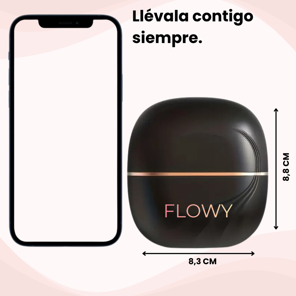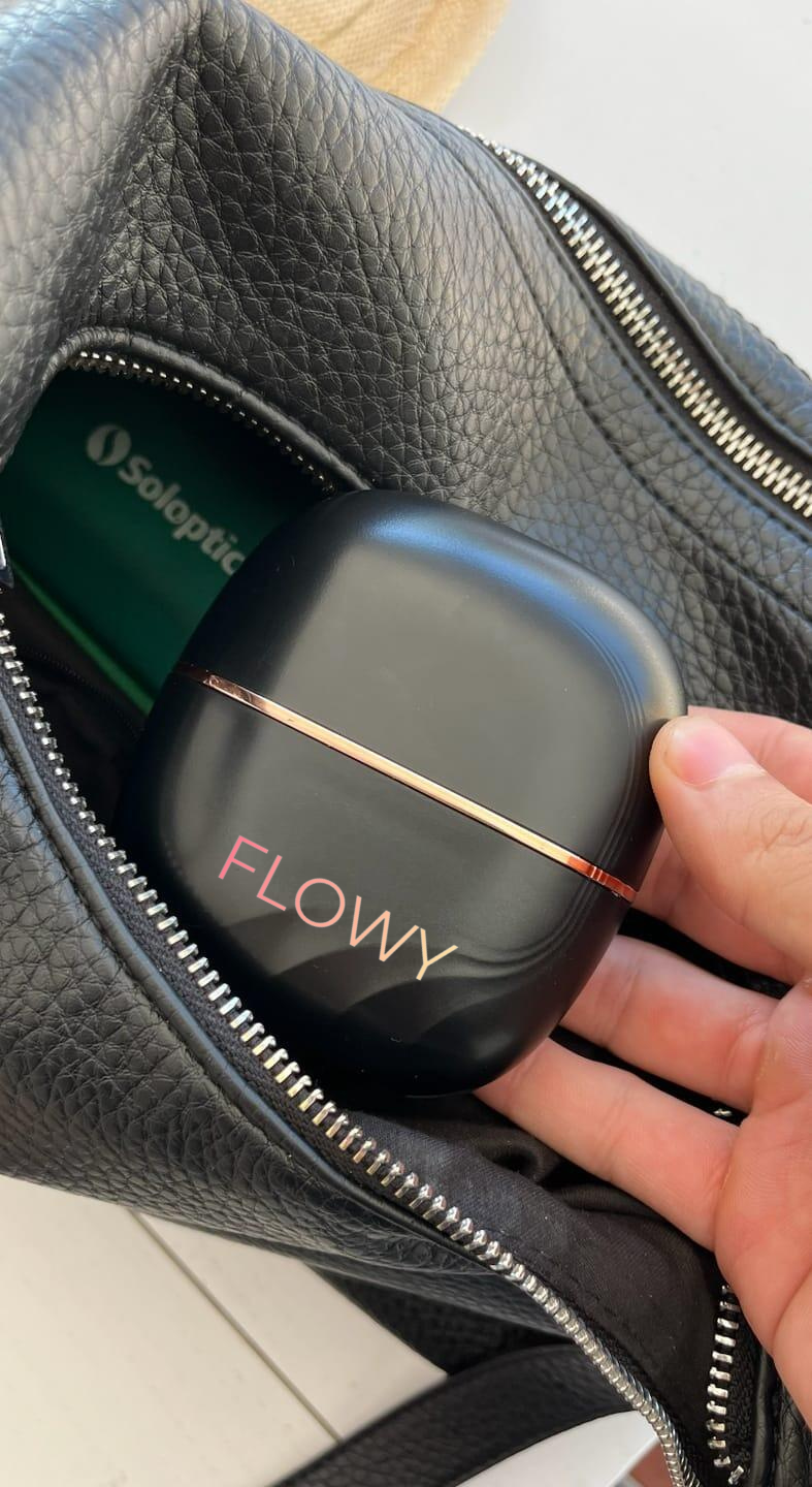 FLOWY cabe en cualquier bolso sin ocupar espacio. Llévalo contigo a clase, al trabajo o de viaje. Su diseño discreto y resistente lo convierte en tu aliado perfecto para retoques rápidos. ¡Nunca más un mal día de cabello!